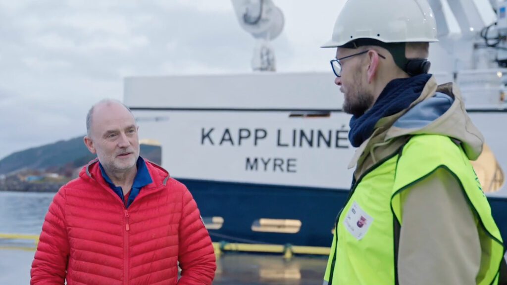 Normex sales manager Lars Christian Vik welcomes us on board MS Kapp Linné – a modern combination vessel for fisheries and aquaculture, owned by Myre Kystdrift.